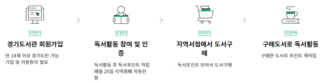 - 경기도 지역서점에서 포인트 사용 가능(*지역화폐 가맹점으로 등록된 서점업종의 지역서점)
